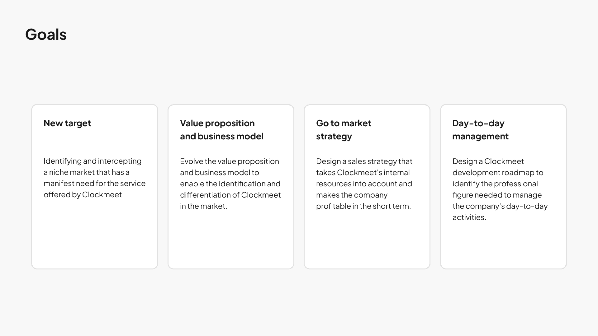 Clockmeet is at a standstill, where it does not really know who it is, what it has to offer and what direction to take for its future. How should Clockmeet evolve, from a business perspective, to become a profitable and successful company?